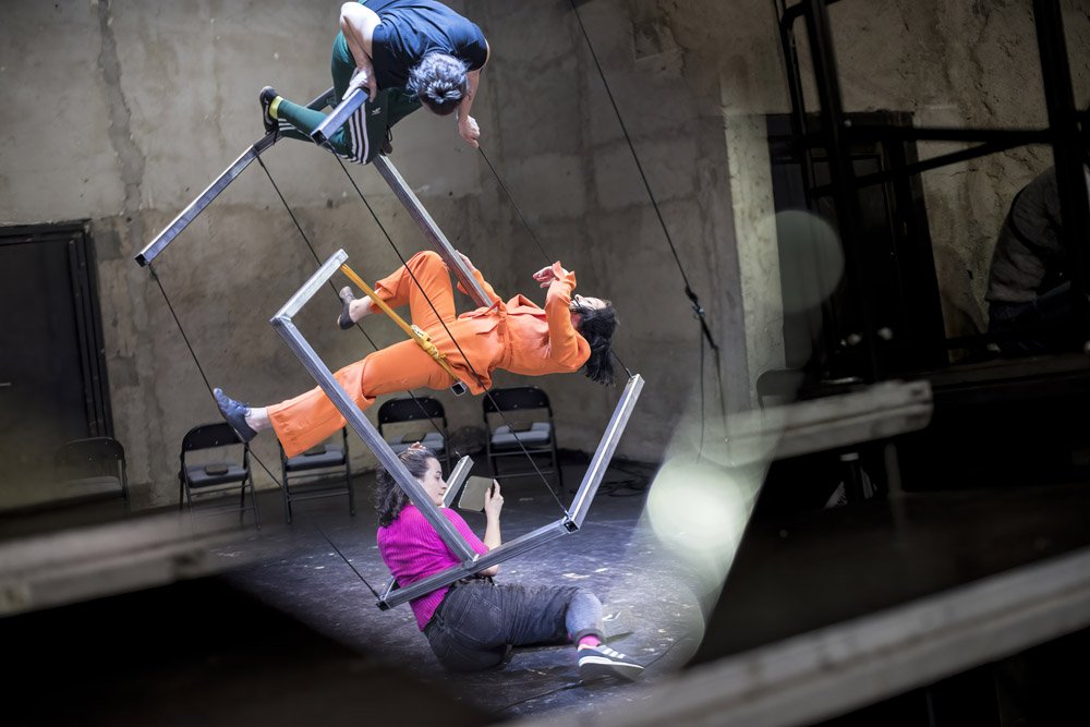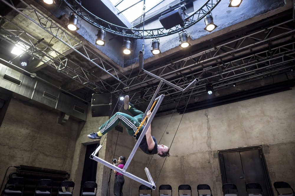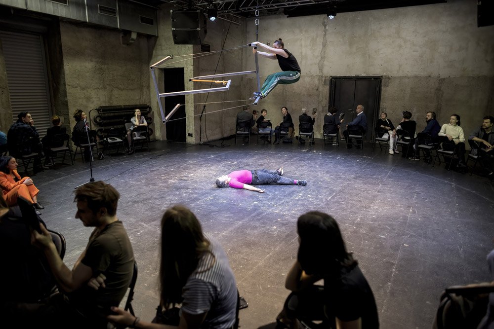 Vizuálně-pohybová performance s prvky nového cirkusu a současného tance.