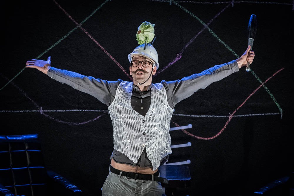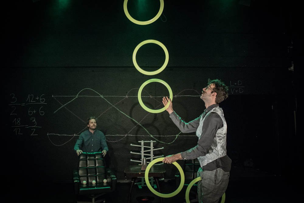 Kabinet žonglérských kuriozit je systematický žonglologický exkurz do hlubin a tajů zručné manipulace s objekty. Mýty, fakta, argumenty a nečekané souvislosti. Interaktivní performance stírající hranice mezi divadlem, novým cirkusem, stand-up comedy a vědeckou přednáškou.
