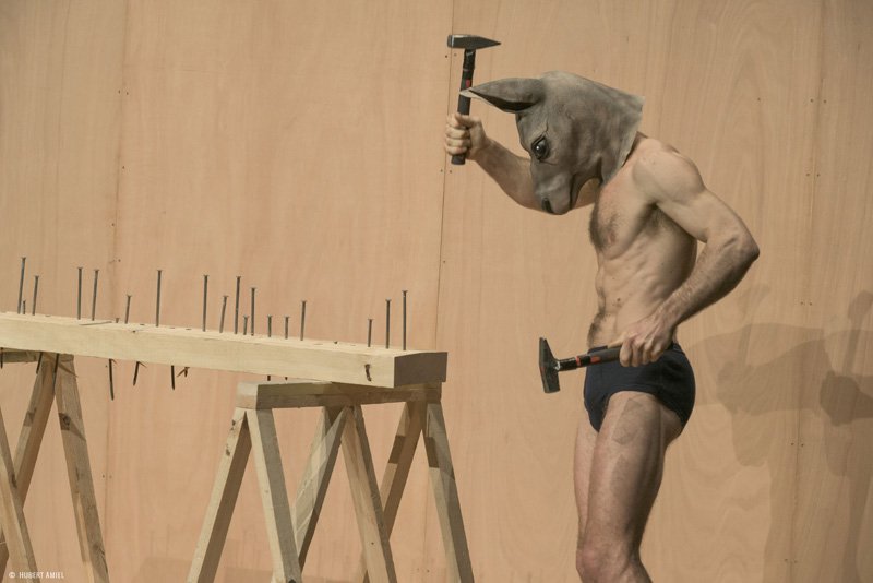 nedůležité, získávají na fantaskním staveništi nový význam. Claudio Stellato ve svém třetím představení jde při zkoumání těla a hmoty skutečně do hloubky. Fyzicky vyčerpávající performance, ve které si sáhne až na samotné dno svých sil, vede někdy až k absurdnímu výsledku.