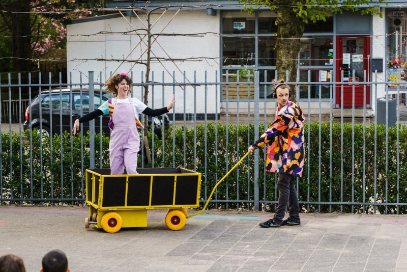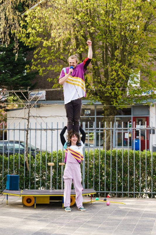 V nutkání se spojit s jejich prostředím, dva barevní a nepředvídatelní jedinci se spolu učí fungovat a společně tak hledají rovnováhu mezi dvěma extrémy sociálního spojení: online a offline přítomností. V jejich rozviklaném vozejčku přívážejí cirkusové dovednosti, živé rytmy a pozitivní energii do každé ulice a vytvářejí tak virtuální i reálná spojení.