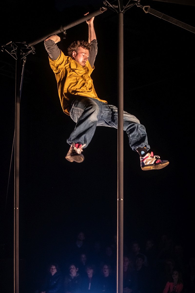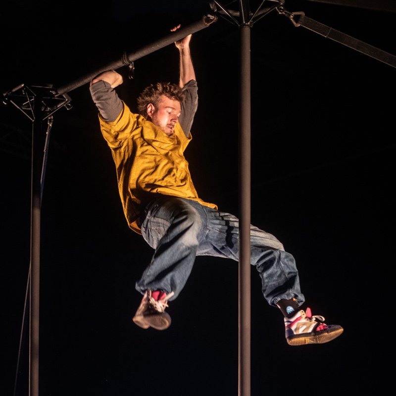 Sólové představení nizozemského akrobata, který si říká “Monki”, v sobě snoubí akrobatické dovednosti na dvojité čínské tyči s živou hudbou a divadlem. Výsledkem je jedinečný zážitek plný pohodové hudby a explozivními cirkusovými technikami, ve kterém ani mluvené slovo nepřijde zkrátka. V představení STATIC hraje čas hlavní roli: dávat čas a brát čas. Ale i fascinace současné generace třicátníků - Monkiho vrstevníků - staromódními, neefektivními technologiemi, jako jsou gramofon nebo Gameboy. Kde ale končí fascinace a začíná nezdravá nostalgie?
