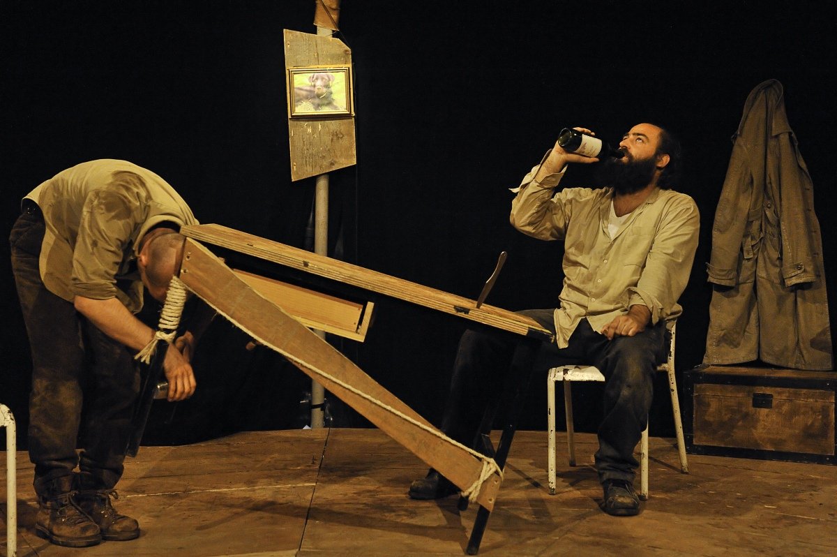 „Dvě loutky, zasmušilé a chytré, si pohrávají s nebezpečím, aby sami sobě dokázali, že jsou naživu a mají se dobře. Zklidněni každodenním životem, pečují jeden o druhého, kloužou, nohama uvízli v současnosti a hlavou ve hvězdách minulých vítězství, o nic neusilují a jsou schopni všeho...“