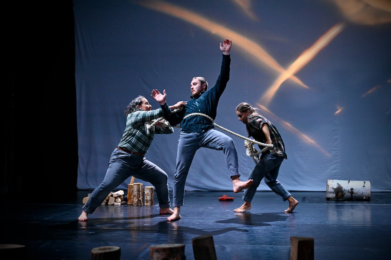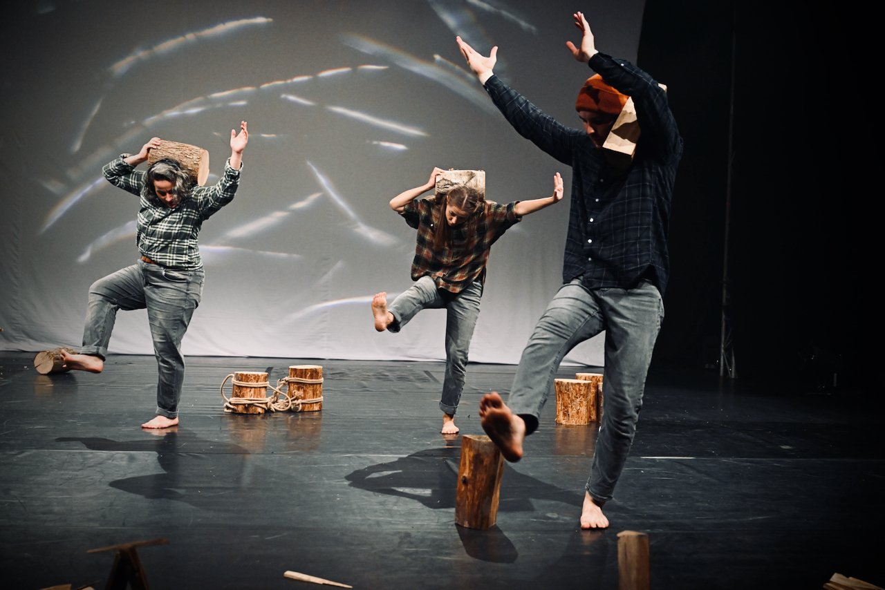 Divoké husy tells stories between heaven and earth about freedom, courage, and friendship, about a pile of wood and a vast, frozen land. It intertwines circus, dance, and physical-object theater, drawing inspiration from heroes of Central European fairy tales and Arctic sagas, as well as from personal experiences in Greenland, the tundra, and the taiga of the Far East.