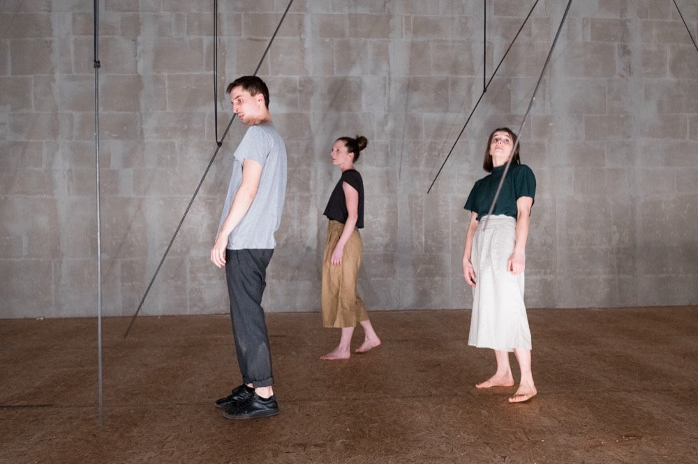 Naším objektem je tenoučká kovová tyč o délce 3 metry. Chová se jinak, kývá se, pruží, obíhá. Jak se s tou změnou vyrovnává tělo? Pohyb se zpomaluje, tělo rozkládá váhu a snaží se stabilizovat. Tyč záhy odpovídá změnou tvaru, čímž vytváří nové podmínky nestability. Tenké linie vykreslují v prostoru pohyblivou grafiku, performer je upozaděn, stává se jen organickým závažím.